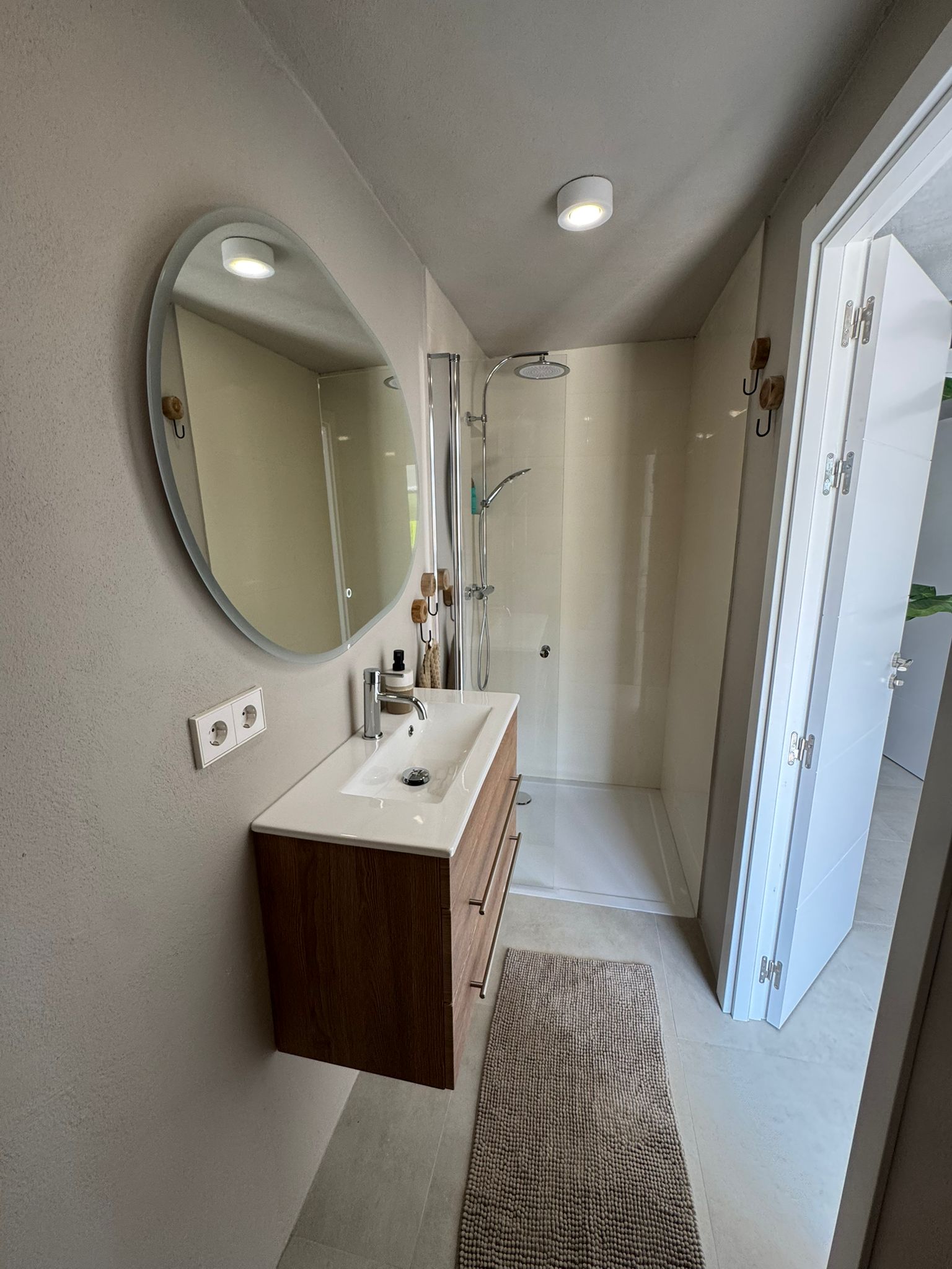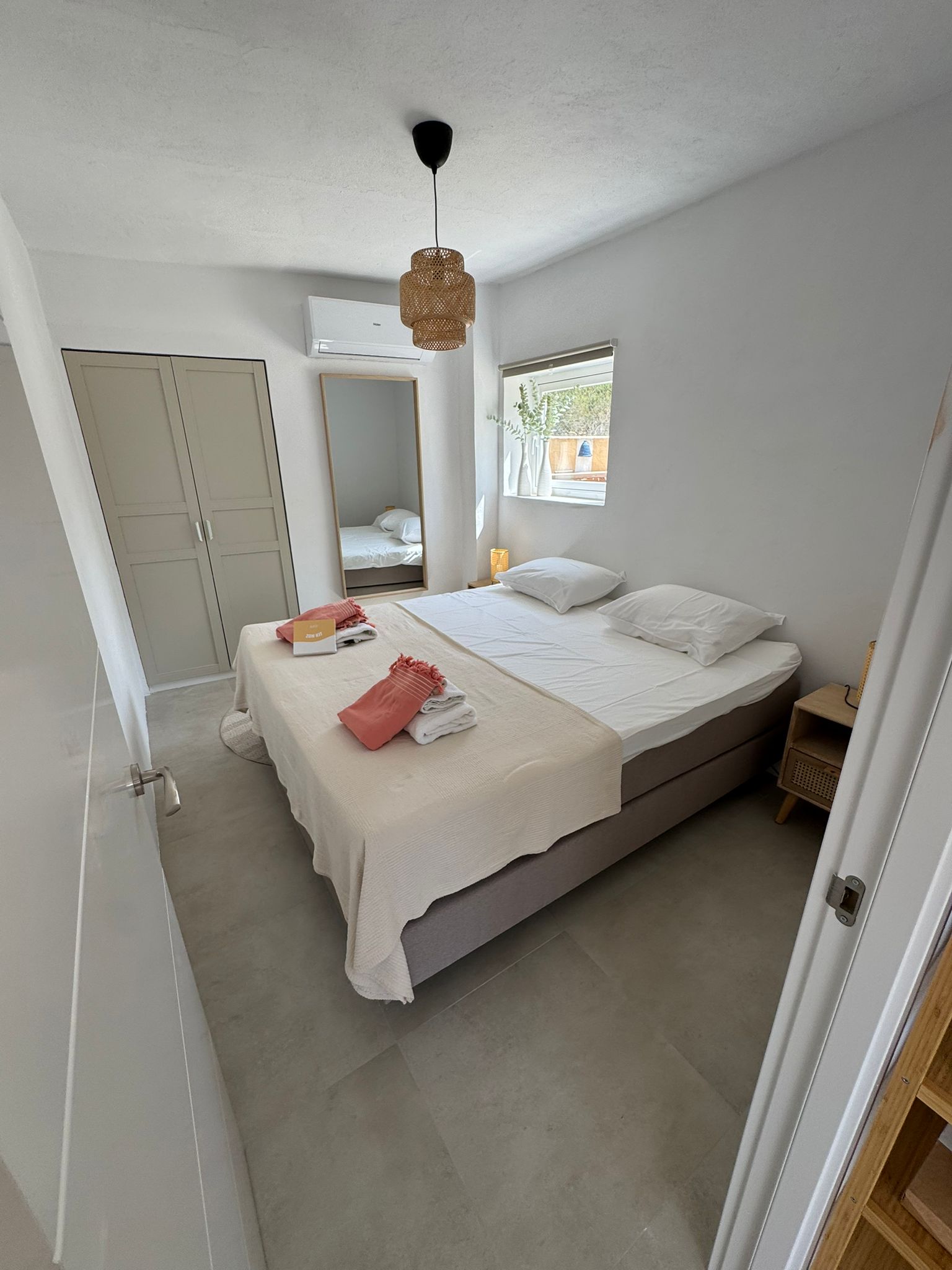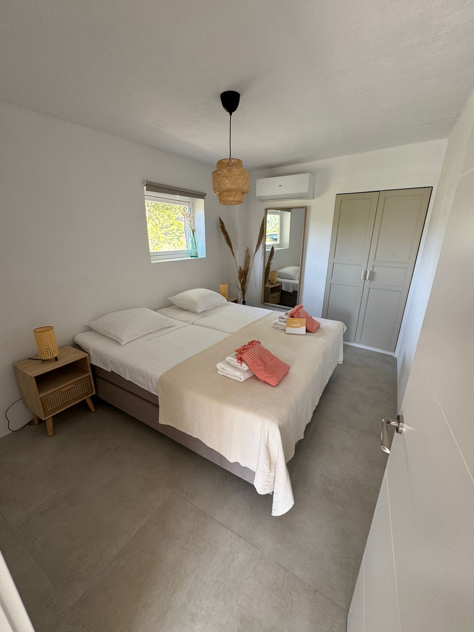 Binnen vind je twee stijlvolle slaapkamers met kingsize bedden, airconditioning in alle ruimtes, snelle glasvezel-wifi en luxe regendouches — zowel binnen als buiten.