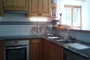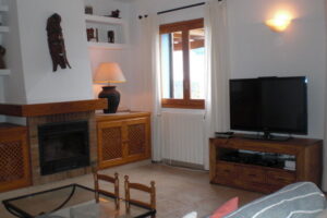 De inrichting van het huis is heel erg Spaans en vooral heel ruim ingericht. In een gezellig woonkamer zit een open haard, een eethoek en twee grote zitbanken. Aangrenzend aan de woonkamer ligt de hoofdslaapkamer; een kamer met een tweepersoonsbed en openslaande deuren naar het terras. Bij deze hoofdslaapkamer hoort ook een badkamer inclusief toilet, douche en ligbad. Aan de andere kant van het huis bevinden zich nog twee slaapkamers; beide met eenpersoonsbedden. Deze kamers hebben de beschikking over een ventilator en delen samen een badkamer.